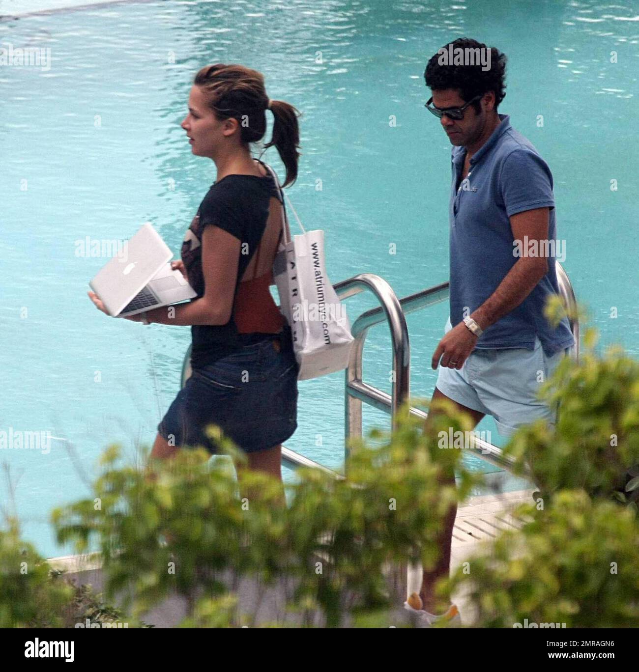 Exklusiv Jamel Debbouze Und Melissa Theauriad Verbringen Einen Nachmittag Am Pool Melissa Holte Sich Computerarbeit Ein Wahrend Jamel Entspannt War Miami Fl 2 25 09 Stockfotografie Alamy