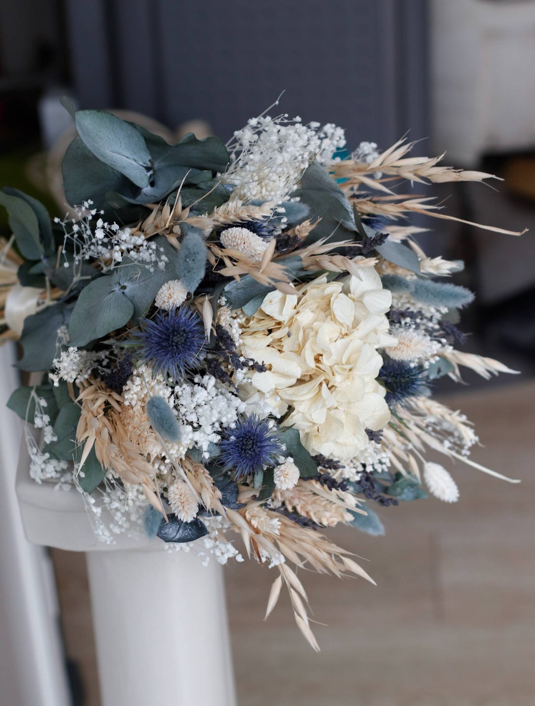 Weiss Und Blau Getrockneter Und Stabilisierter Blumenstrauss Fur Etsy De